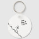 Hand drawn black stick man running up a flight of stairs with "one step at a time" slogan keychain