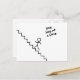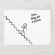 Hand drawn black stick man running up a flight of stairs with "one step at a time" slogan postcard.