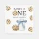A Little Sweet Cookie. Watercolor kids birthday party. Watercolor cookies with chocolate and bottle milk with blue bow.