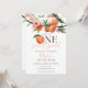 This charming first birthday party invitation features a peaches and blossom watercolor, along with elegant script typography. Designed by Thisisnotme©