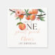 These charming first birthday party paper napkins feature a peaches and blossom watercolor, along with elegant script typography. Designed by Thisisnotme©