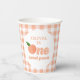 One Sweet Peach! First Birthday party cups with peaches and plaid.