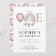 Cute whimsical little miss ONEderful theme watercolor boho rainbow girl's 1st birthday invitation with balloons. A cute balloon and rainbow pattern on the back of the invitation, with pastel pinks, blues and gold and little pink hearts. Available as a digital download, or in print, or both!