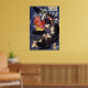 Oniwakamaru about to kill the giant carp. Oniwakamaru attacks the giant carp which ate his mother. Utagawa Kuniyoshi (Japanese: 歌川国芳) (ca. 1797 - April 14, 1861) was one of the last great masters of the Japanese ukiyo-e style of woodblock prints and painting. He is associated with the Utagawa school. The range of Kuniyoshi's preferred subjects included many genres: landscapes, beautiful women, Kabuki actors, cats, and mythical animals. He is known for depictions of the battles of samurai and legendary heroes. His artwork was affected by Western influences in landscape painting and caricature.