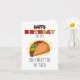 This playful card celebrates the special bond between two foodie hearts. Whether it’s a close friend, a significant other, or a fellow taco enthusiast, this card is sure to bring a smile to their face. The quirky meat pun adds a dash of humor to the occasion. Perfect for anyone who appreciates a good laugh and a tasty taco!
