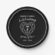 Black onyx celebrating 7 years of love wedding anniversary party paper plates. Simple outline heart stone line art graphics black and white onyx wedding anniversary paper plates. Personalize with your own wedding party details. The 7th anniversary is associated with the gemstone black onyx and the heart symbolises love. Graphics and design by Sarah Trett for www.mylittleedenweddings.com on zazzle.