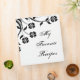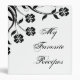 Organize your favourite recipes with this recipe book binder featuring a white background adorned with onyx floral blooms. Customizable text allows you to alter fonts, change text colours and sizes as you wish. Personalize for yourself of makes a great gift.
