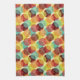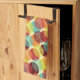 The kitchen towel features a multitude of overlapping dots in vivid colours. The pattern creates a wonderful decorative element.