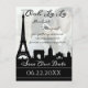 This beautiful modern Save the Date postcard invitation allows you to add your own photo behind the Paris skyline complete with the Eiffel tower. It features a sophisticated black and white colour scheme.