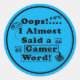 Oops i almost said a gamer word Blue Classic Round Sticker