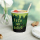 These fun Halloween zombie crawl paper cups feature green ooze drips and a scary graveyard scene. The typography is fun yet modern. The greeting on the front says "ooze and booze". This is the perfect design for a fun adult Halloween party!