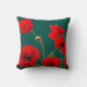 Opal Cyan Deep Colourful Red Poppy Flower Floral Throw Pillow