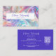 Modern and stylish, this opal iridescent business card, featuring your name in chic script calligraphy on the front and a vibrant violet background on the back. An excellent way to impress your clients with a unique design and make the right impact to be remembered. This contemporary layout is perfect for any professional like a makeup artist, nail specialist, hair stylist, beauty salon owner, aesthetician, beautician and more. Personalize the front with your name and title (or website address) and include your name, title, phone number, email, website address, social media accounts, and a scannable QR code on the back.
