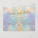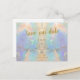 This elegant wedding save the date invitation postcard is decorated with an image of the beautiful multi-colours of aquamarine blue, pink, peach and sea foam green in a precious opal. Text is in non-metallic golden yellow.