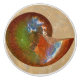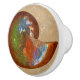 These drawer pulls feature a stunning image of an opalized fossil ammonite shell. This creature is a Sphenodiscus lenticularis from the late Cretaceous period and can be found on many continents. It has an intricate suture pattern and smooth surface.