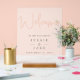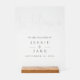 Greet your guests with a unique, elegant welcome sign designed for modern celebrations. This easy-to-read piece features a crisp white background and refined typography, blending minimal style with sophisticated charm. The sign’s clean layout highlights the happy couple’s names and wedding date in large script and serif fonts, making a striking first impression. Perfect for setting the tone at any celebration, this sign is both practical and distinctive, enhancing your event entrance with contemporary grace.