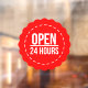 Open 24 Hours l Red Circle Opening Time Window Cling