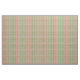 This Christmas fabric has a mid-century modern design of repeating orange rectangles with white rectangles inside alternating with teal rectangles.