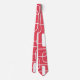 This tie has a mid-century modern design of open and closed rectangles in white on a field of red.