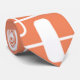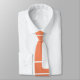 This tie has a mid-century modern design of open and closed rectangles in white on a field of orange.