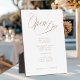 "Open Bar" Modern, Calligraphy, White, Wedding Drink Menu Sign. Personalized in minutes. Add your data, and you can select the font, colour, size and position individually by clicking "Personalize more".