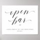 Elegant Calligraphy Script Wedding Sign - Open bar compliments of the newlyweds enjoy! or custom text. A stylish yet simple formal design in black and white or any background colour you choose. Just click the customize further link, shown under the text personalization area on the right, and choose your custom colour background. This sign poster template makes it fast and easy to create stunning additions to your wedding decor. Signs can be enlarged, there are many sizes to choose from, as well as options for custom framing and matting. wedding custom signage.