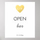 Open Bar Wedding sign, faux gold heart Poster