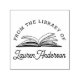 Personalized bookplate stamp featuring vintage hand-drawn style book with personalized name.