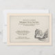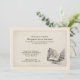 An elegant invitation with a hint of old world charm featuring a stack of books, one of which is open with a pen by its side. The woven texture centre is framed in buff.