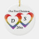 The anniversary ornament we ordered for my inlaws is beautiful. The color is perfect, and it arrived with a sweet little velvet pouch to store it in. My only complaint is that it was too late in arriving for it to be a Christmas gift, but in hindsight I should have ordered it earlier! The quality is top notch. The printing of the photo on the ceramic is great, clear and vibrant.