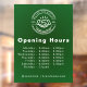 • Customizable with your business logo, opening hours, and QR code