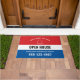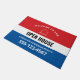 Welcome potential clients to your open house event with this customizable open house doormat. The large lettering makes it easy to read. The easy to customize template makes it perfect for real estate agents to make a professional first impression. Designed in red white and blue.