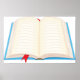 Elevate your space with this beautiful open lined book graphic poster. This striking design features a blank lined page spread ready for your imagination, set within a crisp blue cover and accented by a red bookmark. Perfect for classroom decor, library displays, reading nooks, or as inspirational artwork for writers and students. Use this poster to motivate learning, commemorate literacy events, or add a vintage literary touch to any room. Available in multiple sizes to fit your specific decorating needs.