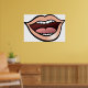 Bring a bold statement to any wall with this striking open mouth cartoon graphic poster. Perfect for adding a fun, vocal art touch to music rooms, speech therapy offices, or bedrooms. This high-quality illustration features stylized pink lips, white teeth, and a detailed tongue, captured in a clean vector drawing style. Ideal for lovers of unique design elements and expressive artwork. Available in various sizes, this poster is an attention-grabbing conversation starter and an essential piece of expressive human anatomy artwork. Decorate your space with this expressive illustration of talking or singing.