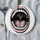 Buttons showing open mouth with all the teeth and tongue drawn with hand.