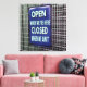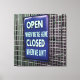 This is a fun open and closed sign wrapped into one, with an artistic flair.