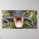 A hungry North American Alligator, ( Alligator mississippiensis),opens wide to show his choppers to visitors at the Corkscrew Swamp Sanctuary near Naples, Florida. STATUS: The North American alligator was almost hunted to extinction in the first part of the 20th century. Hunters killed them for their skins, which were used to make belts, purses, wallets, and shoes. Today, the United States government protects this alligator, and while they are still being hunted, all hunting is controlled by permit. Once listed as an endangered species, the North American alligator populations are now increasing in some areas. PHYSICAL CHARACTERISTICS: Adult males range from seven and 10 feet in length, although rare individuals may reach as much as 19 feet. Females are considerably smaller. Eyes, ears, and nostrils are located on top of the head, so that the alligator is able to see, hear, and breathe while almost totally submerged in the water. Special adaptations in the alligator’s mouth allow it to open its jaws underwater to catch prey without getting water into its lungs and possibly drowning. These alligators have webbed feet—skin between their toes—that help them in the water. But when swimming, it is the powerful tail that’s used to move through the water, with the legs serving as a rudder. The muscular tail is also a powerful weapon of defence. HABITAT: The American alligator is found in fresh and slightly salty waters of coastal marshes, swamps, rivers, lakes, and man-made canals in the southeastern United States, from eastern Texas, east through Louisiana, southern Mississippi, Alabama, and Georgia, and north into the Carolina coastal regions, and south to the tip of Florida. Their name comes from early Spanish explorers of North America, who called them "el lagarto," Spanish for "the lizard." North American Alligators can live up to 50 years.