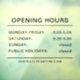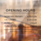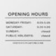 Opening hours window cling featuring black or custom colour text on a transparent background. Colours and fonts can be changed with the design tool.