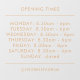 A simple custom business opening hours vinyl window cling decal sign template in a modern minimalist style. This professional template allows you to easily design a custom opening times list for your store, salon, restaurant, cafe or any other business.