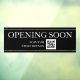 OPENING SOON Sign with QR code for store entry door or window in white text on black background with QR code message.
