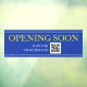 OPENING SOON Sign, QR Code, Message Blue/White/Yel Window Cling