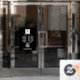 Modern, black, Business Logo, QR code opening times window cling. Personalize it with your details.