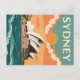 Sydney Opera House by the harbour in soft 1950s-style colours.