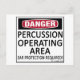 Danger, Percussion Operating Area! Ear Protection Required! This is fair warning to anyone around the percussionists. See all our musical designs on on cups, mugs, tee shirts, sweatshirts, hats, and other gifts and clothing.