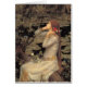 Ophélie assise au bord d'un bassin d'eau avec une fleur dans les cheveux. Art vintage de John Williams Waterhouse dans le domaine public.