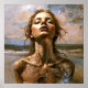 “Ophira” Fragments of the Sea. This image captures a moment where the human form dissolves into the textures of water and earth. It speaks of transformation, the beauty of impermanence, and the raw power of nature. A woman lost in the embrace of the sea, her face lifted toward the golden sun, dissolving into the elements. This artwork captures the delicate balance between serenity and erosion.
