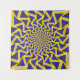 Optical motion illusion bitmap background. Blue arrows revolve circularly around the centre on yellow background.