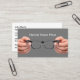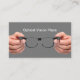 Modern business cards with vision care hands holding a pair of eyeglasses to try on and simple classic visiting card layout you can customize online with this template. Designed for an optical store, Ophthalmologist, Optometrist, Optical Store, or eye doctor.