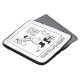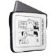 Optician laptop cover sleeve. The cartoon illustration shows an optician giving a customer an eye-test. Following a remark from the customer, the optician checks the spelling in the small-print on his eye-test chart and tells patient, "You're right - they have spelt 'Printed in China' incorrectly".