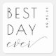This wedding sticker features a minimalist and modern design with the phrase "BEST DAY ever" in bold, sans-serif typography paired with elegant cursive script. The layout is clean and balanced, utilizing negative space to highlight the text. The black-on-white color palette adds clarity and sophistication, making it perfect for celebrating your special day. The contemporary style conveys an optimistic and celebratory mood, ideal for marking memorable moments.